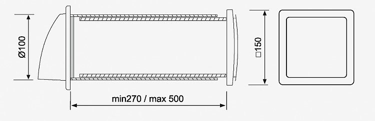 2 - Телескопический воздуховод даёт возможность регулировать длину в соответствии с толщиной стены.