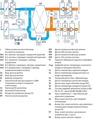 Приточно-вытяжная установка Aqua Pool RP комплектуется вентиляторами EBMPapst серии EC, работающими в режиме CAV, системой автоматики JetLogic с цветным сенсорным пультом управления и всеми необходимыми датчиками, а также противоточным рекуператором, позволяющим экономить энергию в холодный период года. Осушение воздуха производится дозированной подачей наружного воздуха, поэтому эта серия рекомендуется для регионов с умеренным климатом.